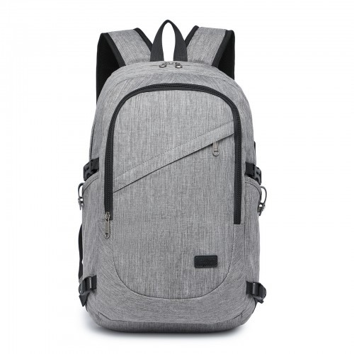EM2111 Kono Multi-Compartment Backpack with USB Port - Grey, Water-Repellent, Anti-Theft, Travel & Daily Commuter Bag