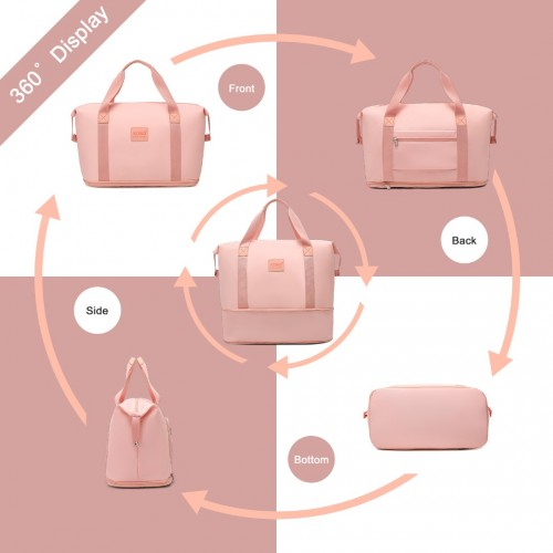 K1871-1L+EA2212 - Kono ABS 4 Wheel Suitcase Set With Vanity Case And Weekend Bag And Toiletry Bag - Pink
