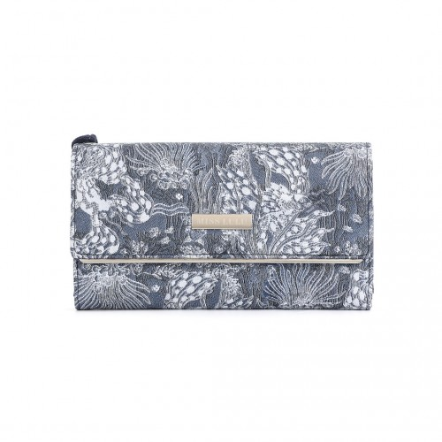 Miss Lulu Ladies' Flower Printed PU Leather Long Purse - Stylish Blue Wallet for Women