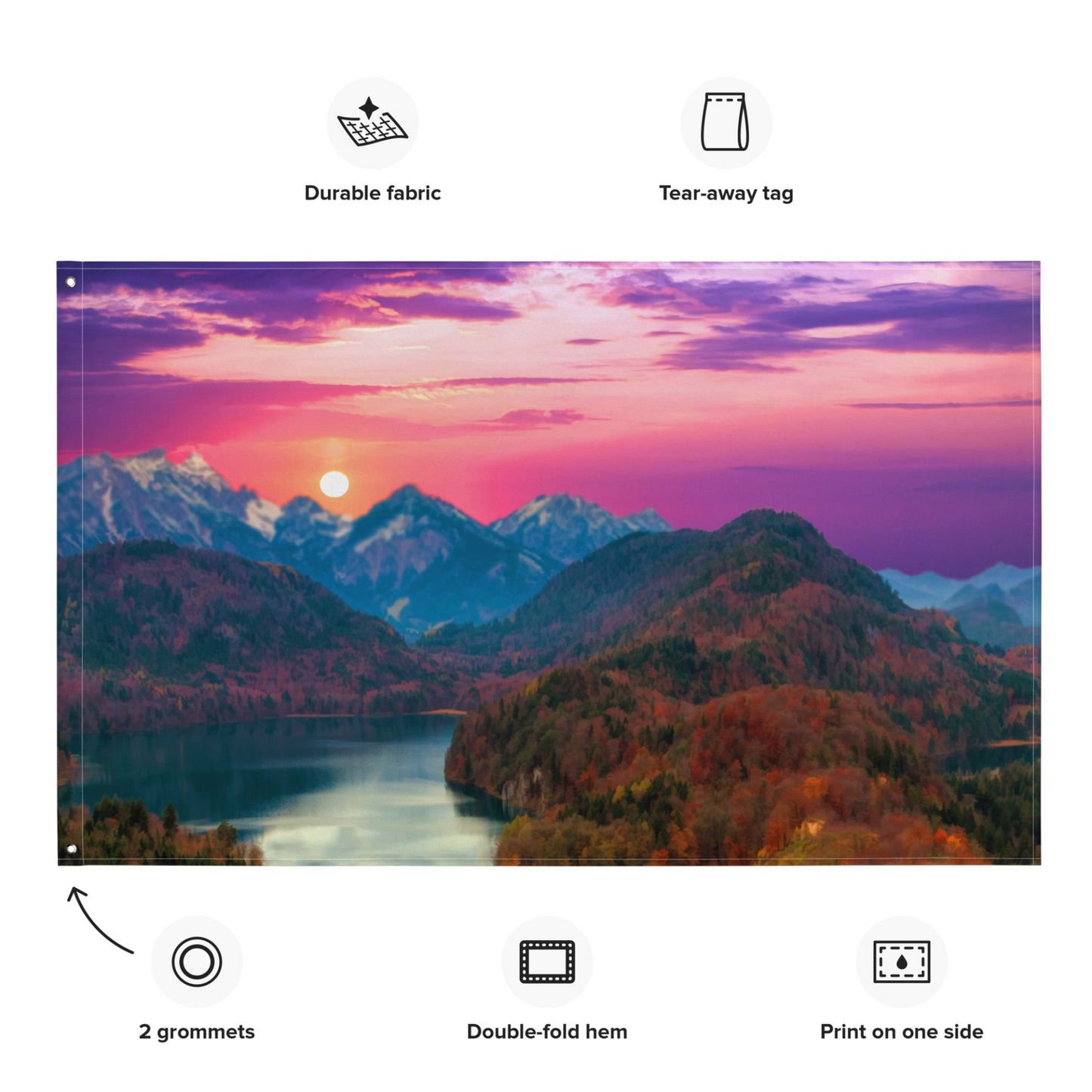 • Equipped with 2 iron grommets for easy hanging"