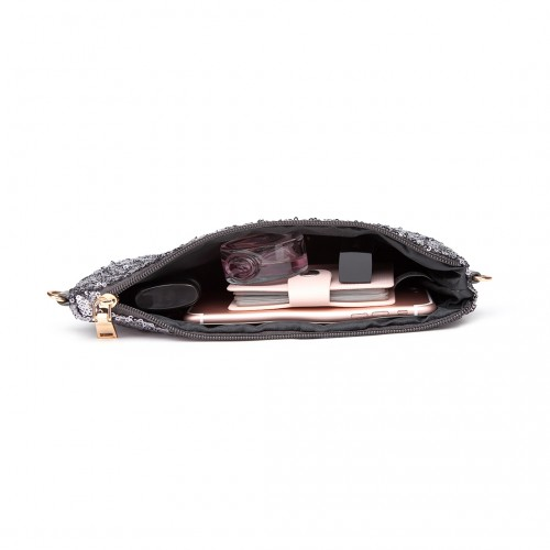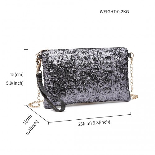 LH1765 - Miss Lulu Sequins Clutch Evening Bag - Grey