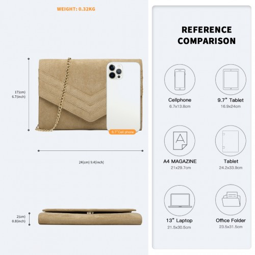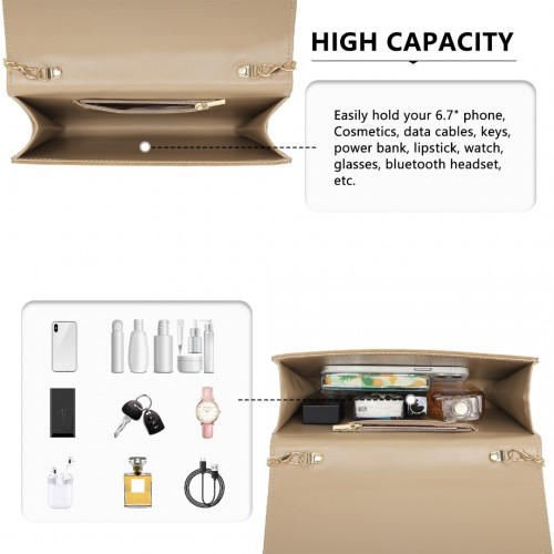 Suitable size for your essentials for a night out or event: phone, money, keys, and cosmetics/perfume.
