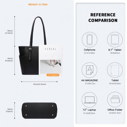 LT6648 - Miss Lulu Three Piece Tote Shoulder Bag And Clutch - Dark Grey